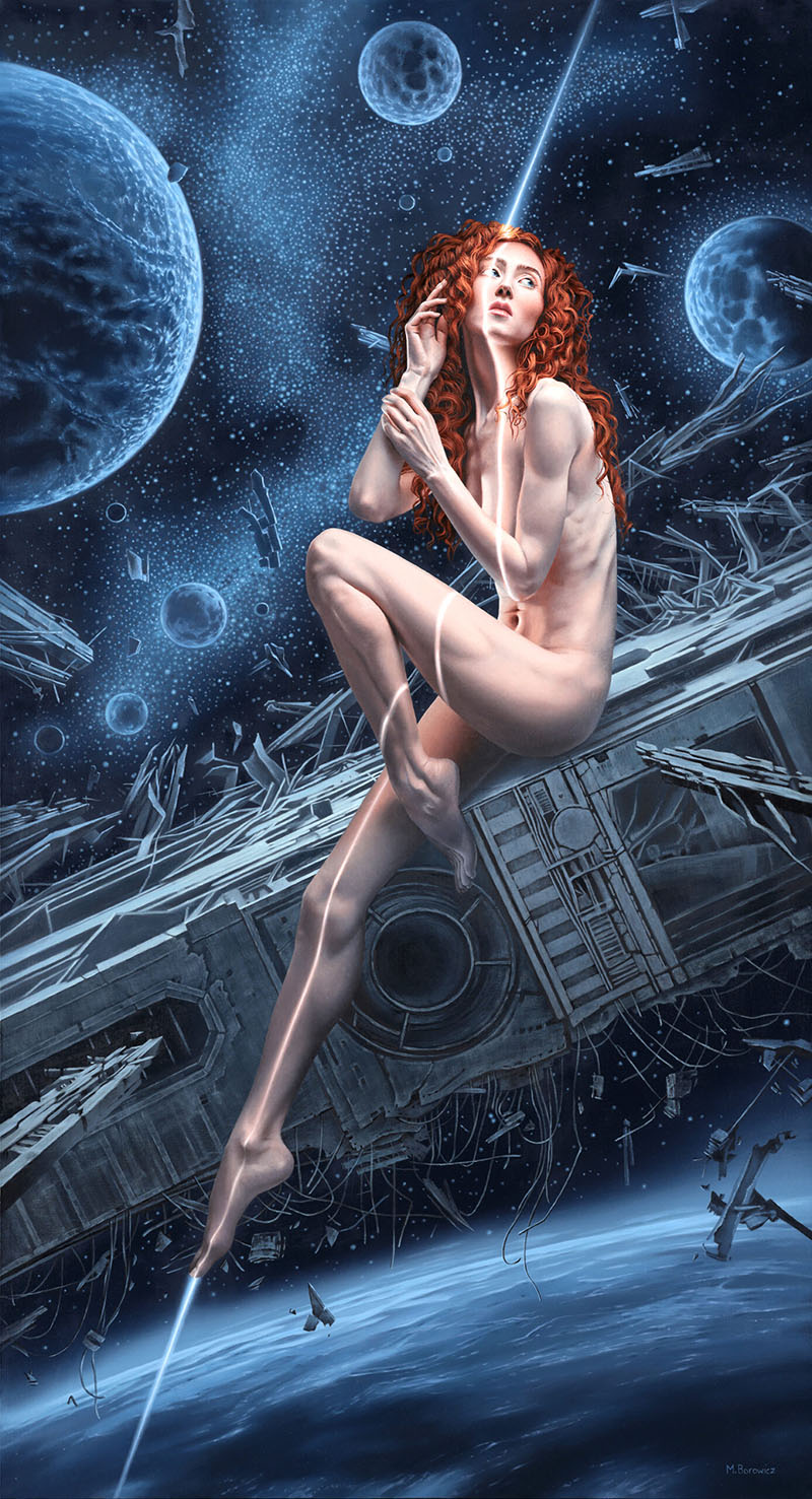 Despite having taught digital painting workshops and lectures on special effects in cinema, you choose traditional oil painting to encapsulate your most complex messages. That very peculiar mysticism exhibited in your work—can it only be provided by traditional pictorial craftsmanship?