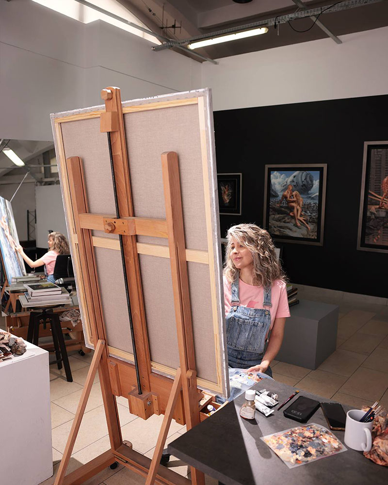 The content of my paintings is a metaphor for the reality that surrounds us. I often place human figures within post-apocalyptic landscapes. Everything there is both symbolic and real at the same time.